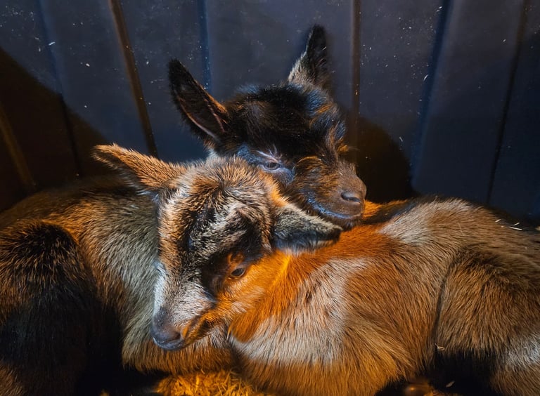 All of our goats are either polled (naturally hornless) or disbudded at Loki Farms. Both for their safety and ease of management. Horned goats can get caught in fencing or injure other herd members, especially when playing. If you're wanting to purchase one of our kids horned, we can accommodate with a non refundable deposit.