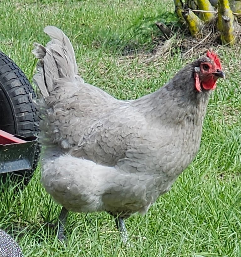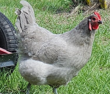 They are about 1.5 years old and purchased as chicks from Hoover's Hatchery. They lay well, they're healthy. They are the most broody of the bunch, and also some of the most calm. They lay medium to large light brown eggs.