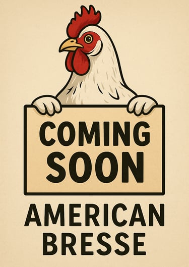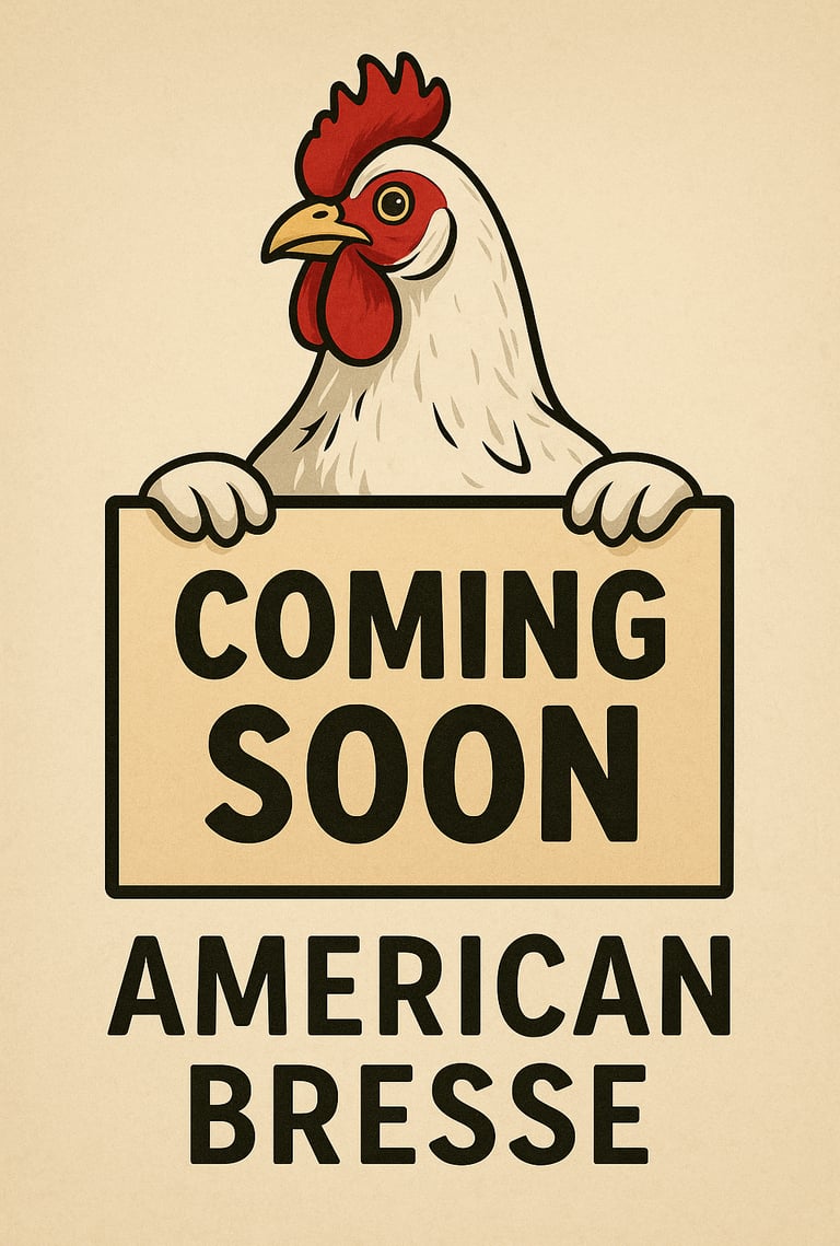 Our first Bresse chicks are arriving from Cumberland Creek Farm early November, and if everything goes as planned, they’ll start laying around March. Once they’re established, we plan to offer: